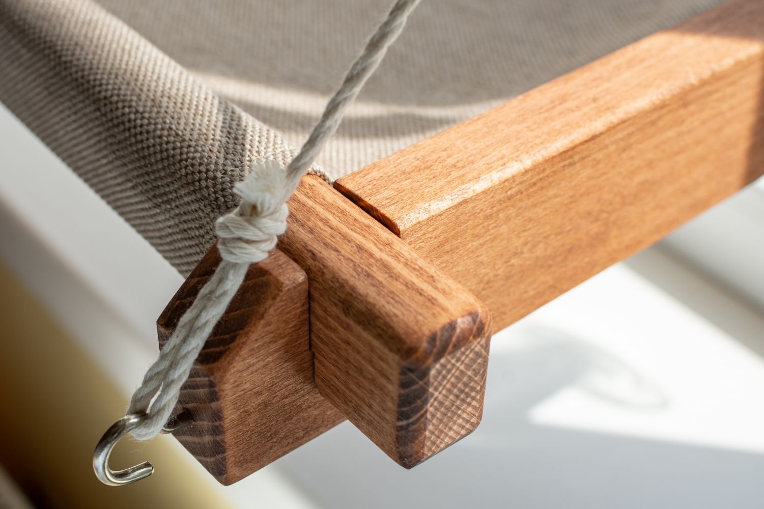 Гамак-ліжко Віконний 4327 см. Коричневе дерево, бежева тканина