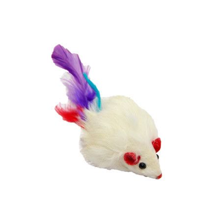 Іграшка для кішок миша 9см натуральна біла з дзвіночком і пером набір 5 шт SH02