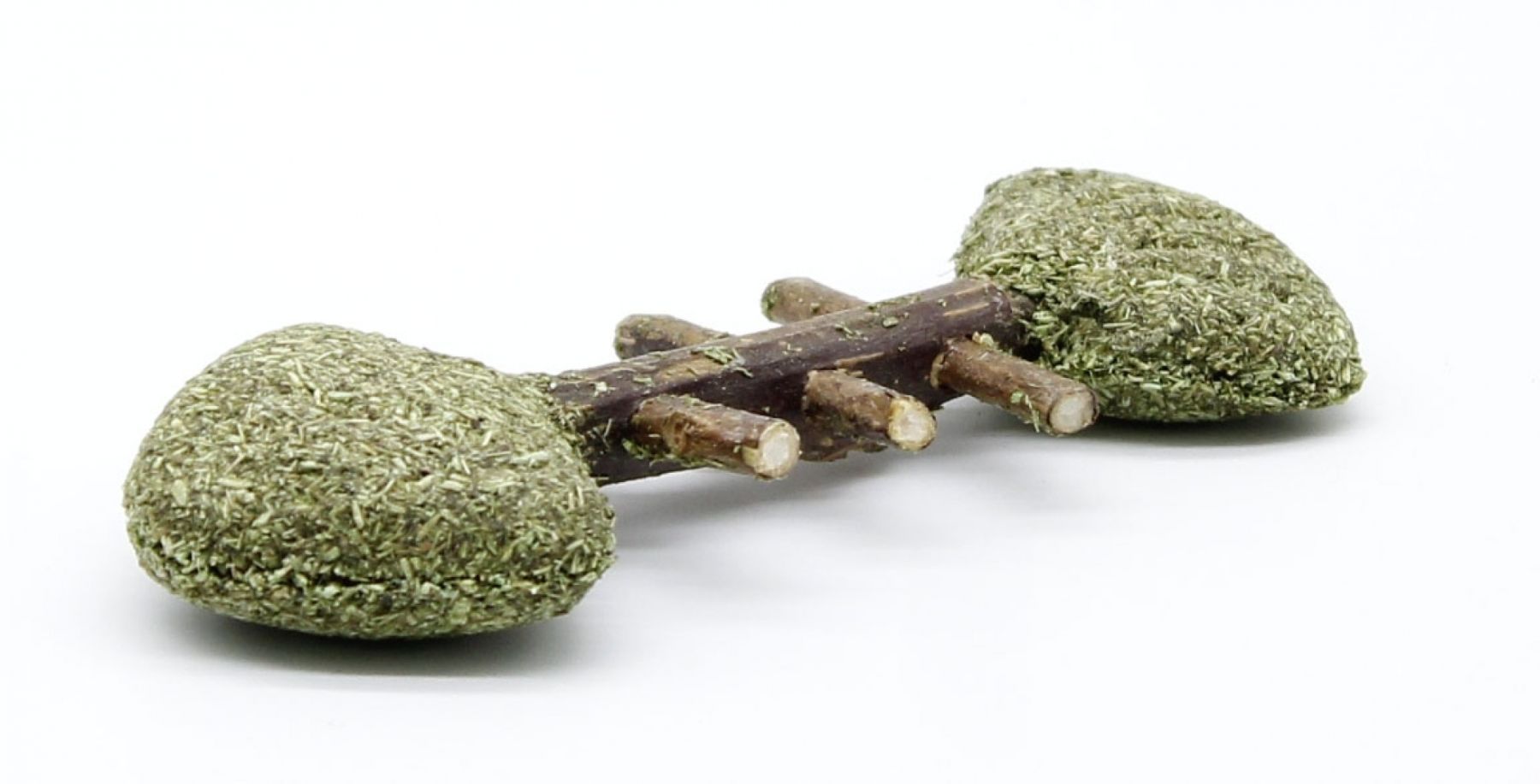 Ця оригінальна іграшка для котів - ідеальний аксесуар для активної та різноманітної гри з пухнастим улюбленцем. Виріб виготовлений зі спресованої котячої мяти та паличок мататабі.Завдяки своїй щільності така іграшка прослужить максимально довго, а привабливий аромат котячої мяти миттєво приверне увагу вашого вихованця. Паличка мататабі з ефектом котячої мяти зменшує стрес і агресію, а також знижує ризик виникнення захворювань зубів і ясен.