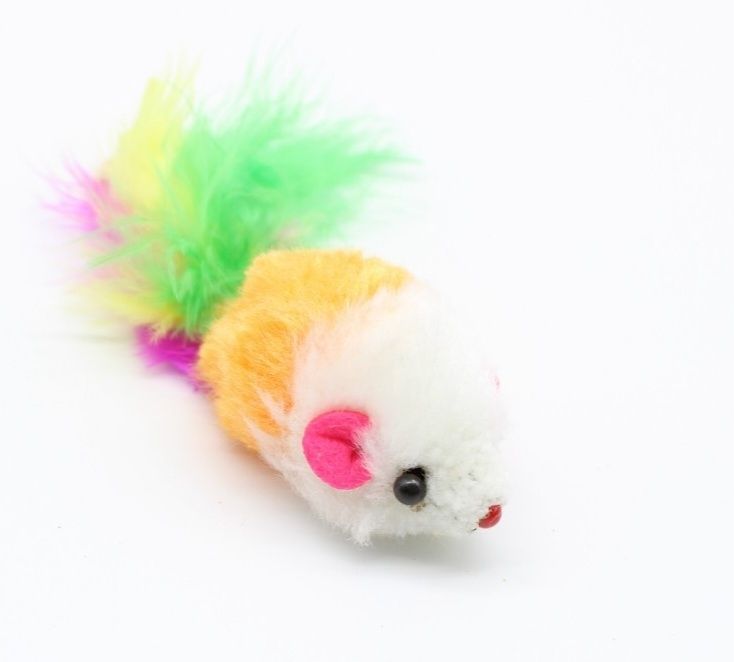 Іграшка Миша Плюшева з брязкальцем і пером кольорова 5 см.