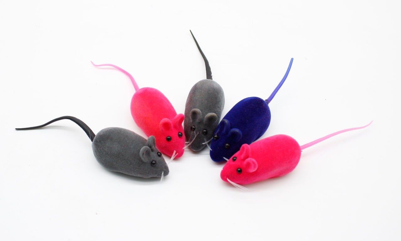 Миша для кішок 6 см велюрова з пищалкою, набір 5 шт.Колір може відрізнятись від кольору на фото