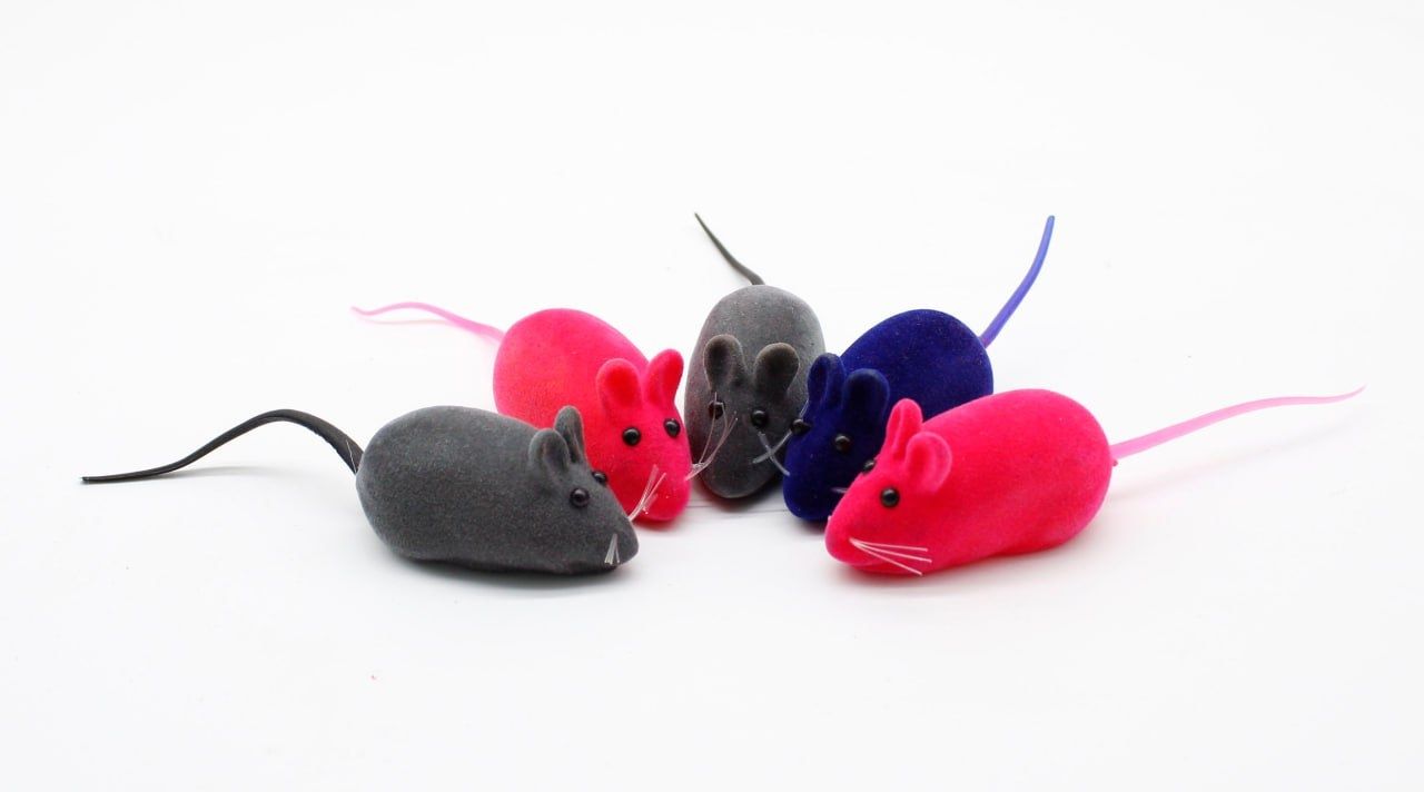 Миша для кішок 6 см велюрова з пищалкою, набір 5 шт