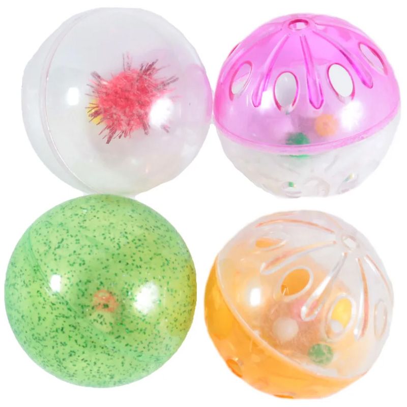 Набір іграшок для кішок (4 кольорових пластикових мячика брязкальця)
