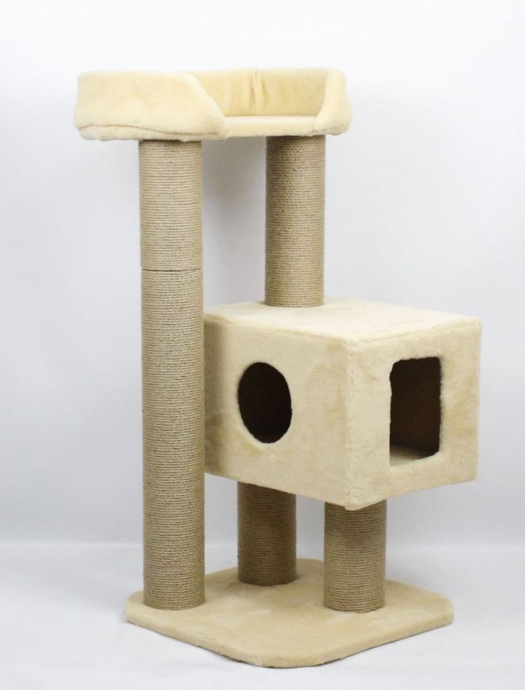 КИЦЬ-КИЦЬ Дряпка джут Бежева. Виготовлена з штучного хутра. Висота 104см, довжина 50см, ширина 53см. Лежанка 50 40 10см. Будинок 46 36 36см, має 2 входи перший 20 15см5, 2см. 35см, діаметр 12см, другий 90см діаметр 12см, і ще два стовпчики по 24см, діаметром 12см).