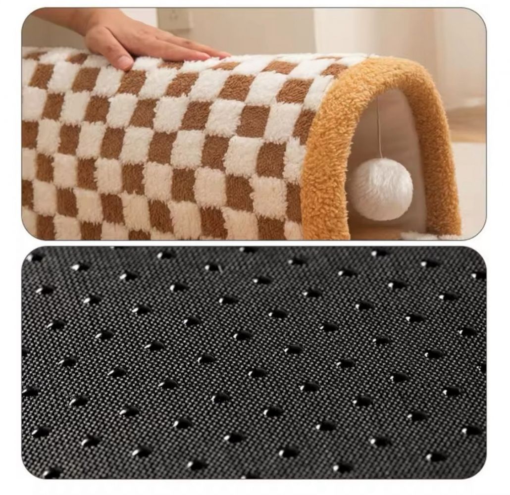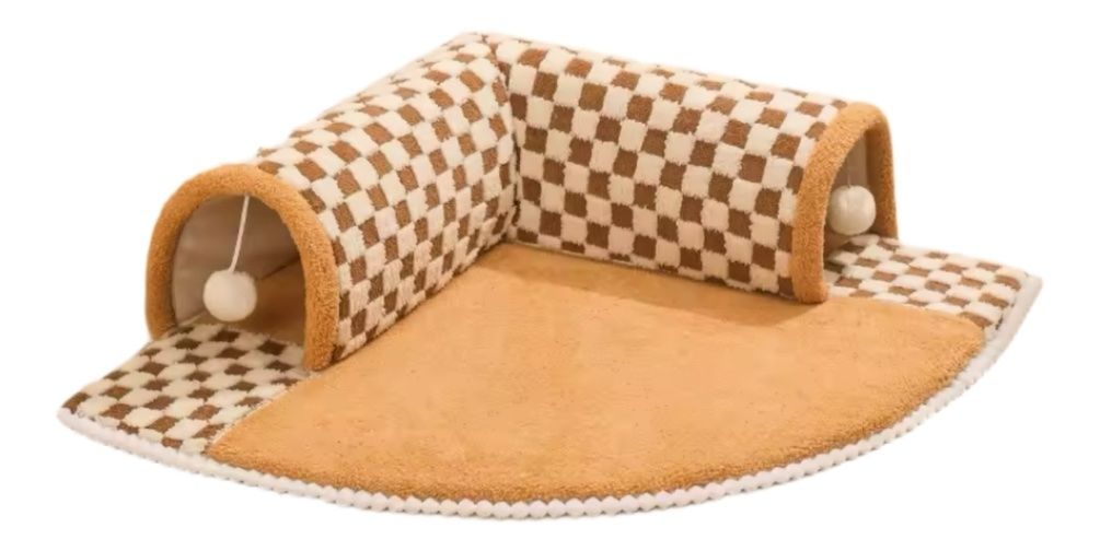 Лежак та тунель для кішок 2в1, комфорт та розвага в одному місці Виготовлена із плюшу, має підвісний мячик для розваг. Легко чистить і прати, дуже теплий і приємний на дотик.