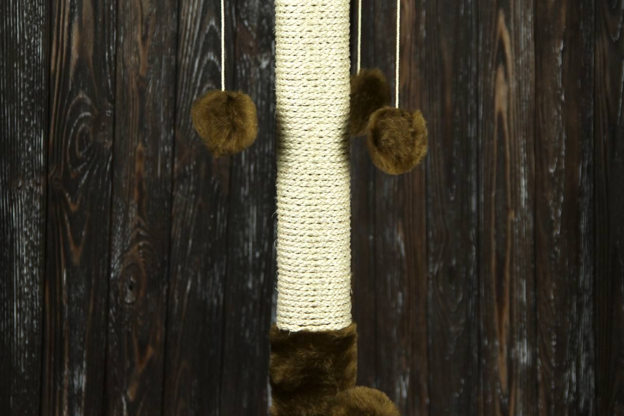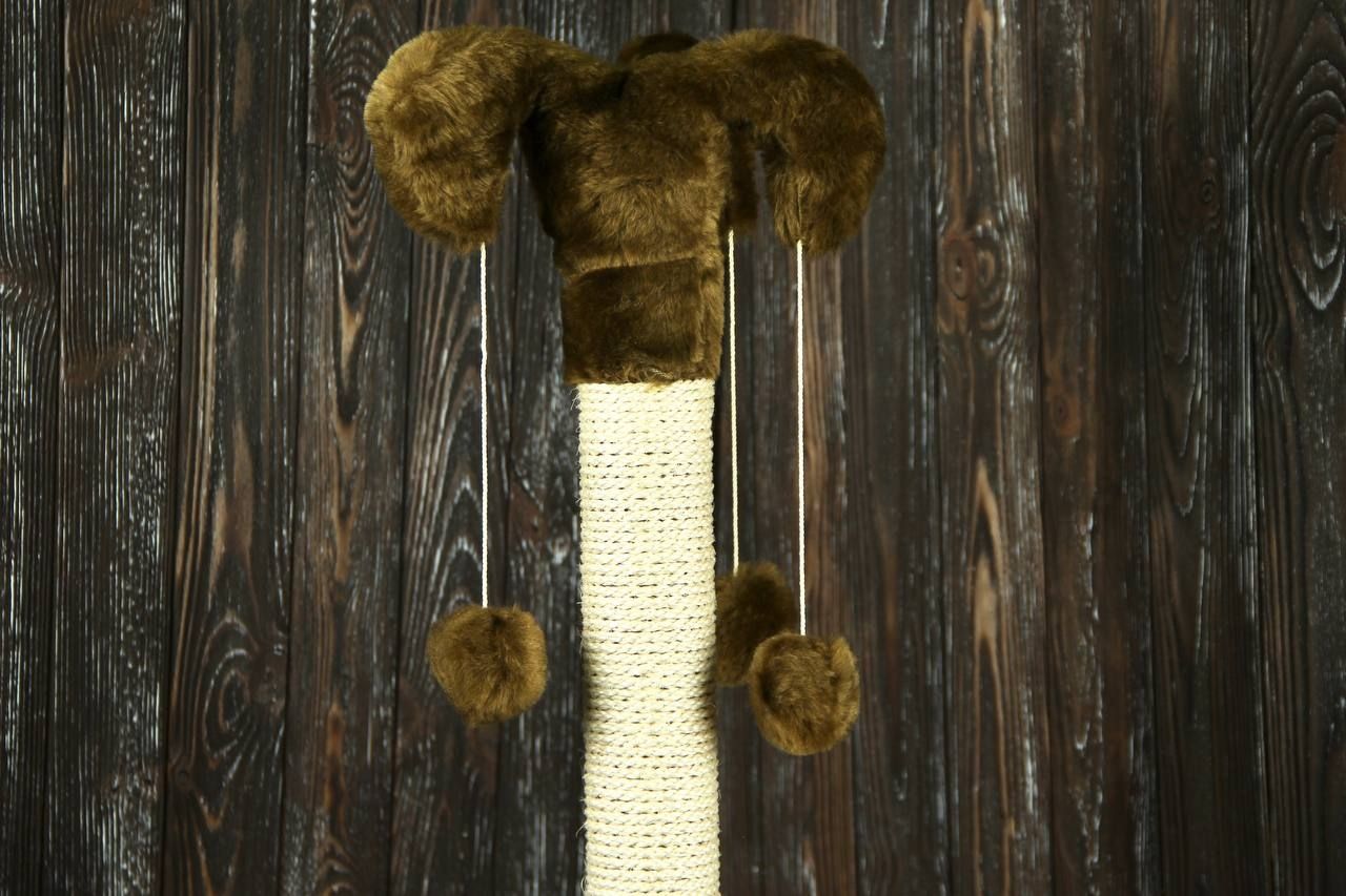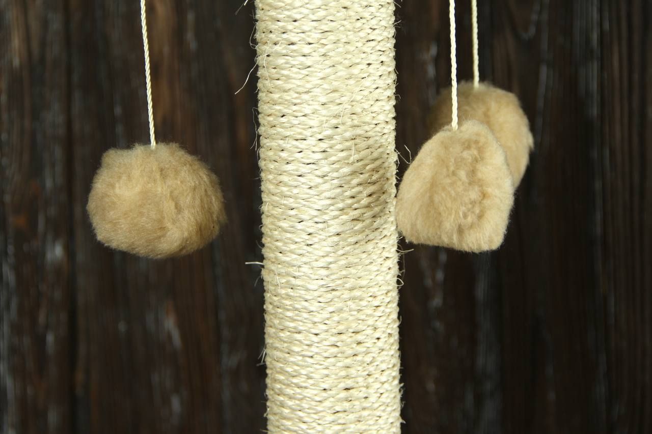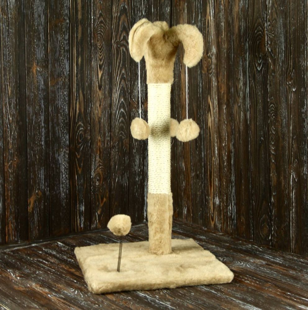 Арлекін Розмір:38х38х67см.D.стовпа: 6.2смМатеріал:штучнехутро,дерево, мотузка, пластик.Вага: 2.5 кг. Обємна вага: кг. Всі ми давно знаємо, що кіт в домі це радість, веселощі та щастя, але й, крім усього цього, є і шкоду (подряпані меблі, руки, шпалери або розідраний диван). У котів є природна потреба точити кігті, і він не вибирає об що. Для цього й потрібні Кігтєточки. Вони потрібні як для дорослих котів, так і для маленьких кошенят адже кігті в них гострі та постійно сверблять. Наша компанія пропонує до Вашої уваги просту, але дуже ефективну кігтєточку Арлекін. Стовпчик із прикольною шапочкою та трьома іграшками-кульками обмотаний натуральним канатом задовольнить потреби Ваших проказників. Ну а кулька на пружинці просто пік радості та блаженства.