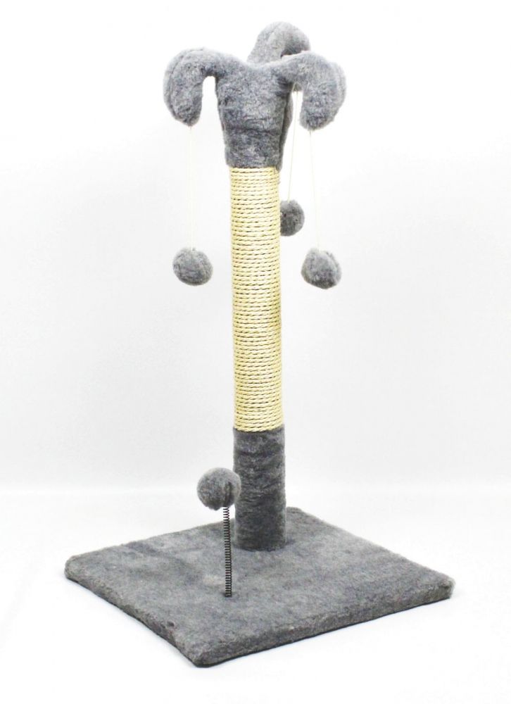 Арлекін Розмір:38х38х67см.D.стовпа: 6.2смМатеріал:штучнехутро,дерево, мотузка, пластик.Вага: 2.5 кг. Обємна вага: кг. Всі ми давно знаємо, що кіт в домі це радість, веселощі та щастя, але й, крім усього цього, є і шкоду (подряпані меблі, руки, шпалери або розідраний диван). У котів є природна потреба точити кігті, і він не вибирає об що. Для цього й потрібні Кігтєточки. Вони потрібні як для дорослих котів, так і для маленьких кошенят адже кігті в них гострі та постійно сверблять. Наша компанія пропонує до Вашої уваги просту, але дуже ефективну кігтєточку Арлекін. Стовпчик із прикольною шапочкою та трьома іграшками-кульками обмотаний натуральним канатом задовольнить потреби Ваших проказників. Ну а кулька на пружинці просто пік радості та блаженства.