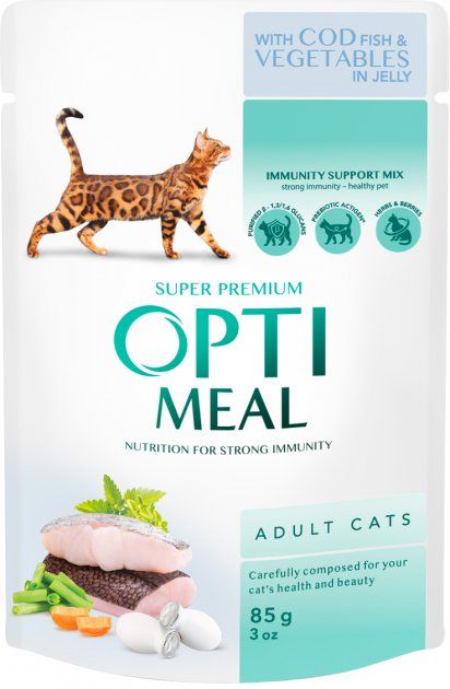 Акція Optimeal вологий корм для кішок з тріскою і овочами в желе 12шт + 12шт в подарунок Акция Optimeal Влажный корм для кошек с треской и овощами в желе 12шт + 12шт в подарок