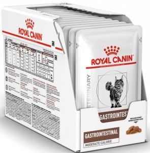 Вологий корм Роял Канін Гастроінтестинал для котівЇжа з людського столу, неякісний корм, погано підібраний раціон основні причини проблем із травною системою тварини. Серед найчастіших хвороб:діареязапалення слизовоїпогана засвоюваність поживних речовингастритколітнеконтрольоване розмноження бактерій у кишечникуЗбалансований вологий Gastro Intestinal Moderate Calorie розроблений спеціально під потреби хворого організму. Містить багато:калорій енергія для тварини, яка ослаблалегкозасвоюваних білків оновлення та відновлення тканинмінераліввітамінівпре-і пробіотиків для нормалізації роботи ШКТненасичених жирних амінокислот відновлення функцій слизової оболонкиПовноцінний корм Роял Канін Гастроінтестинал Модерат Калорі захищає сечостатеву систему від утворення каменів та порушень її роботи.Під час одужання тварині потрібно багато води. Хвороби травної системи часто спричиняють зневоднення.Тривалість курсу дієти визначає лише ветеринар.