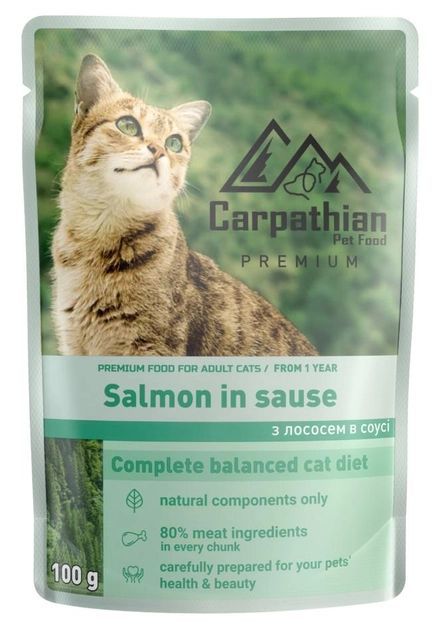 CARPATHIAN Вологий корм для котів із лососем у соусі 100г
