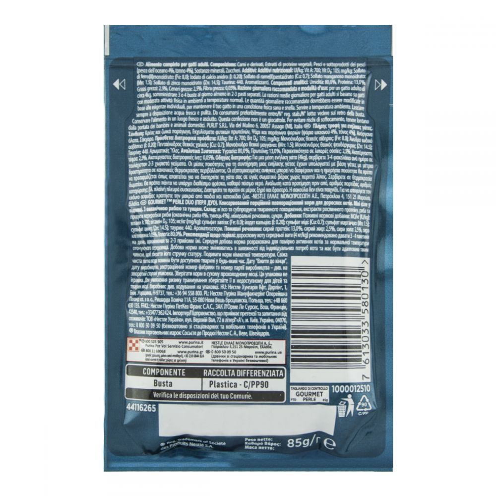 Gourmet Perle консерви для кішок з океанічною рибою і тунцем 85г Павуч 580130
