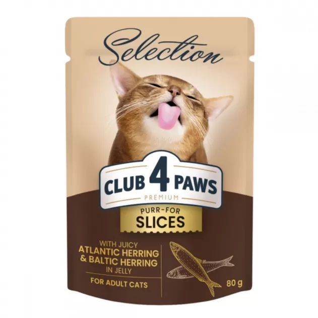 Клуб 4 лапи вологий корм Селекшн шматочки з оселедцем і салакою в желе 85г