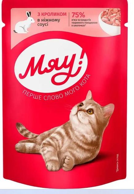 Корм вологий Мяу для дорослих котів З кроликом у ніжному соусі 85 гр.