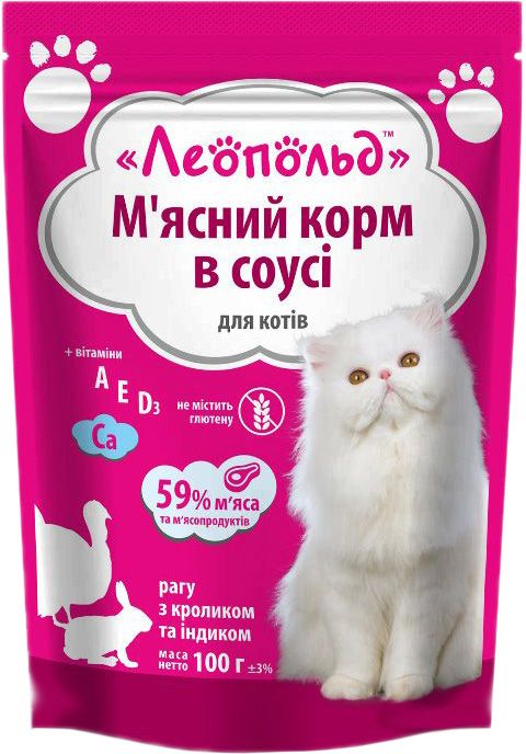 Леопольд Рагу в соусі кролик індичка консерви для котів 100 г Консерви для котів 100гр Леопольд Рагу в соусі кролик індичка 491730