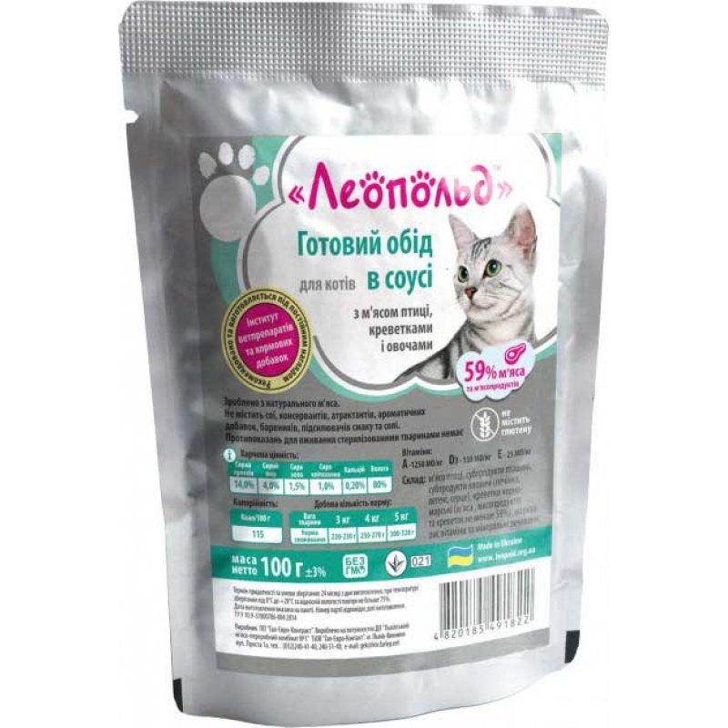 Леопольд в соусі мясо птиці, креветки, овочі консерви для котів 100 г Консерви для котів 100гр Леопольд в соусі мясо птиці, креветки, овочі 491822
