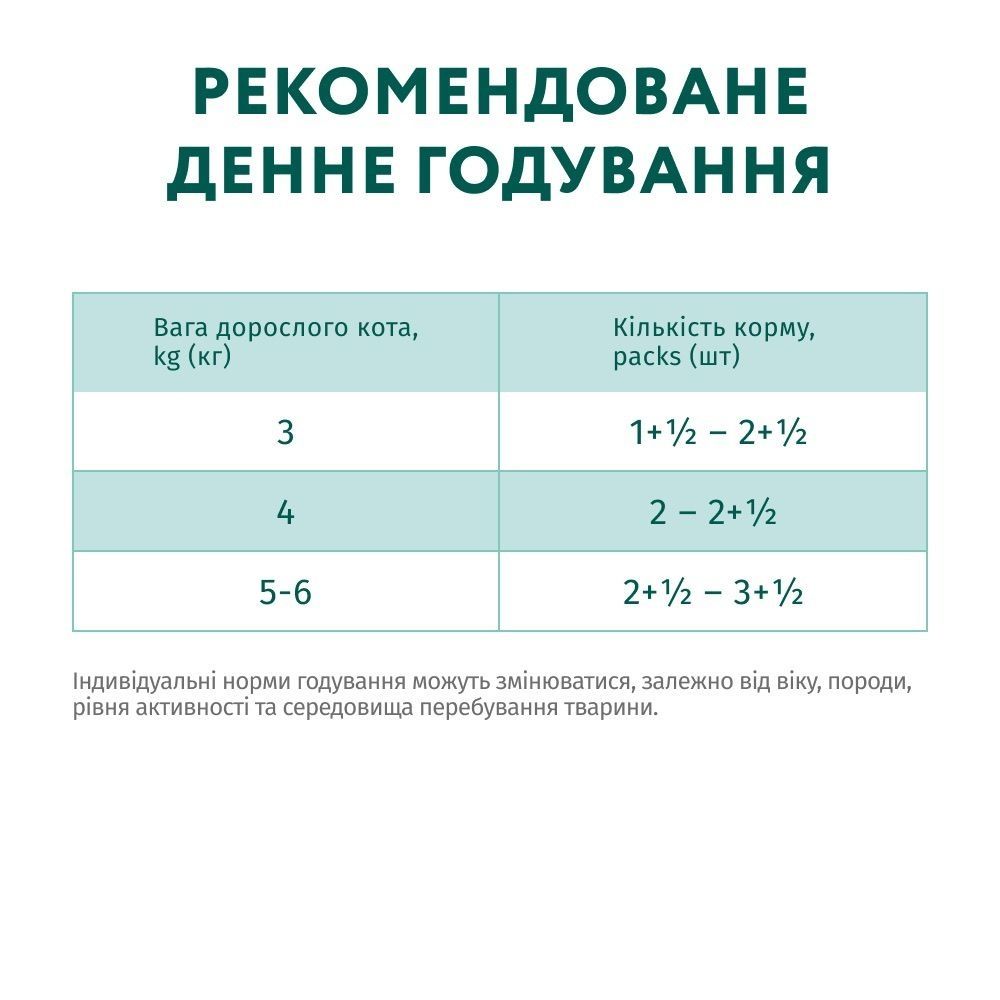 OptimealAdult Cats Sterilised Salmon Blueberries in jellyПовнораціонний вологий корм у вигляді апетитних шматочків з лососем і чорницею у желе для стерилізованих та кастрованих дорослих котів.Це спеціально розроблений раціон для підтримання здоровя сечової системи в стерилізованих або кастрованих котів, а також для підтримання їхньої оптимальної маси тілаЗбалансований вміст мінеральних речовин зберігає здоровя сечовивідних шляхів завдяки утворенню сечі з низькою концентрацією кристалів і підтриманню оптимального pHМістить 82 протеїну тваринного походження, зокрема мясо лосося, курятину та яловичину у вигляді шматочків, завдяки чому забезпечує улюбленця високоякісним легкозасвоюваним білком і сприяє здоровому травленнюМістить вітаміни D3, Е, С, вітаміни групи B, цинк, селен, йод та інші корисні мікроелементи, які комплексно зміцнюють та захищають організм улюбленцяБіотин і ненасичені жирні кислоти Омега-3 й Омега-6, що входять до складу, допомагають знизити ризик виникнення дерматитів, зміцнити нервову систему, а також поліпшити якість шкіри та шерсті котаDL-метіонін сприяє підтриманню слабокислого рівня pH сечі та є хорошою профілактикою утворення каменів, а L-карнітин забезпечує транспортну функцію для жирних кислот, нормалізує білковий та жировий обміни, а також покращує функцію серцяЗбагачений таурином життєво важливою для котів амінокислотою, що підтримує їхній зір і серцево-судинну системуМістить комплекс для зміцнення імунітету Immunity Support Mix з пребіотиками нового покоління Actigen, бета-глюканами, ягодами та корисними травамиВиготовлено під контролем ветеринарів за технологією швейцарської компанії Swiss Pet Nutrition GroupЗ високим вмістом очищеної води