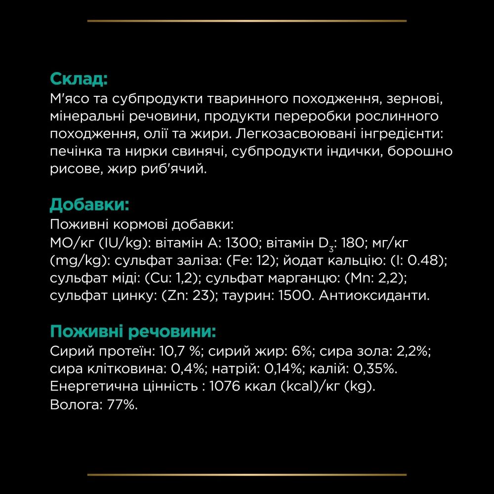 Вологий дієтичний корм для кошенят та дорослих котів Purina Pro Plan Veterinary Diets EN Gastrointestinal для зменшення розладів кишкової абсорбації та годівлі у період відновлення та одужання 195 гПро товарВетеринарна дієта для зменшення розладів кишкової абсорбції та годування у період відновлення, одужання.Переваги:Висока засвоюваність для забезпечення повної абсорбції поживних речовин та мінімізації навантаження на кишечник.З доданою клітковиною, щоб допомогти регулювати транзит травлення.Висока смакова привабливість для задоволення потреб кішок зі зниженим апетитом.Рекомендації щодо годування:перед початком чи продовженням терміну використання корму рекомендується консультація ветеринарного лікаря. Слідкуйте за тим, щоб у вашої тварини завжди була свіжа вода.