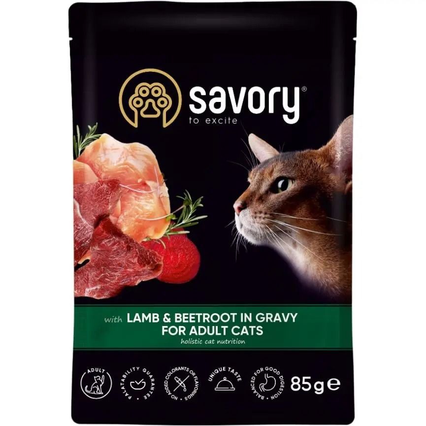 Savory Вологий корм для дорослих кішок ягня з буряком у соусі, 85 г