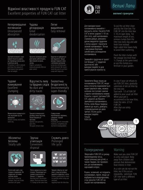 Вага, кг 2.2Обєм, л 5Тип КомкующийсяГранули Великі (Більше 2.5 мм)Особливості контроль запахуКраїна-виробник товару Україна