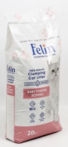 Felin наповнювач для котів пудраПриятний і не нудотний аромат, дуже добре комкується. Не липне до лап і на 99 не порошить.Це більш чистий наповнювач для котячого туалету, придатний для тривалого використання. завдяки його 100 натурального білого мінералу бентониту кальцію і аромату, він природним чином контролює небажані запахи і гарантує чистоту і свіжість. Наповнювач демонструє чудові характеристики гігроскопічності, завдяки високій здатності до грудкуванню.