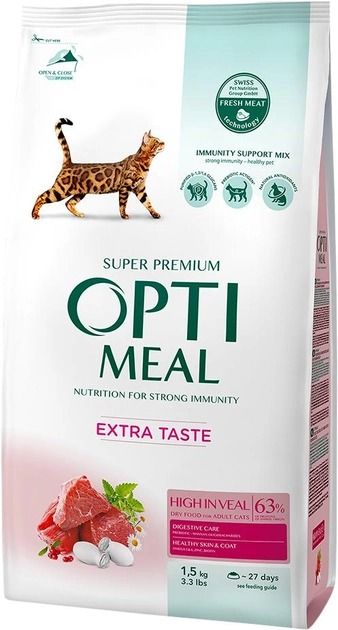 АКЦІЯ Optimeal Повний раціональний сухий корм для дорослих кішок з високим вмістом телятини 1.5 кг -15