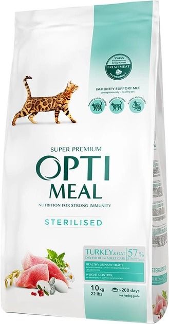 АКЦІЯ Optimeal з індичкою та вівсом сухий корм для стерилізованих кішок та кастрованих котів 10 кг (-22)