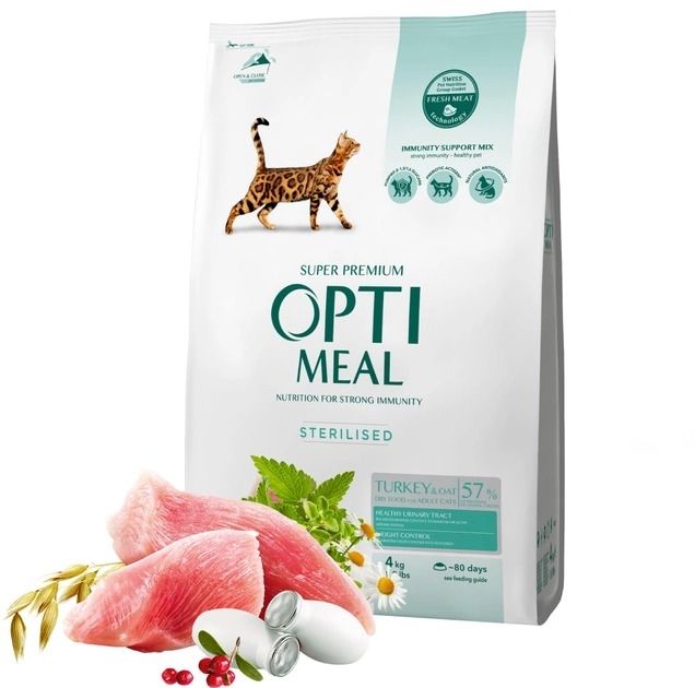 АКЦІЯ Optimeal з індичкою та вівсом сухий корм для стерилізованих кішок та кастрованих котів 4 кг (-25)