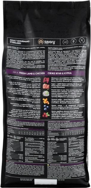 Savory Adult Cat Сухий корм для кастрованих котів зі свіжим мясом ягняти і куркою 8 кг