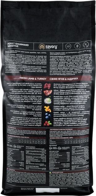 Savory Adult Cat Сухий корм для кішок з чутливим травленням зі свіжим мясом ягняти та індичкою 400 гр