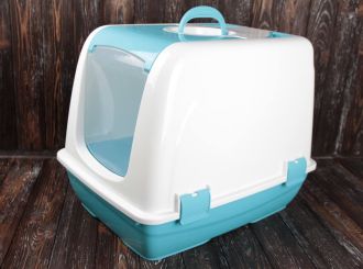 Закритий туалет відрізняє лаконічний сучасний дизайн, мякі лінії контуру, благородний колір і висока функціональність.Зручно використовувати такий вид туалету, якщо він розташований в кімнаті. Таким чином ви мінімізуєте запах, потрапляння наповнювача назовні, закриваєте неестетичний вигляд неприбраного лотка. Якщо підтримувати в ньому порядок, то дискомфорт від наявності туалету в кімнаті буде майже непомітний.