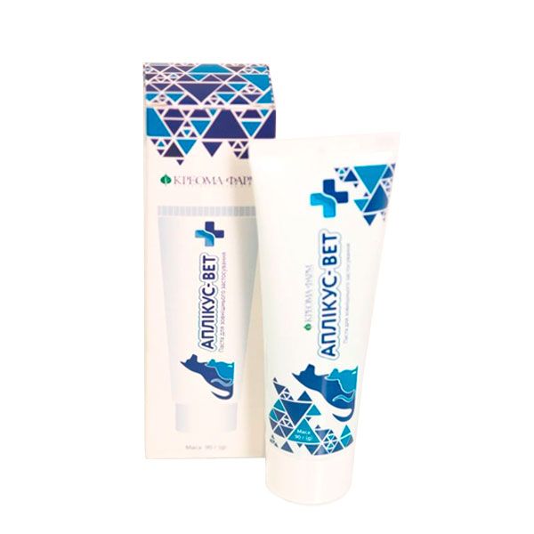 АПЛІКУС-ВЕТ - комбінований препарат для місцевого застосування на основі гідрогелю метилкремнієвої кислоти з іммобілізованими іонами міді, що має адсорбційні та бактерицидні властивості. АПЛІКУС-ВЕТ активний щодо патогенних грампозитивних і грамнегативних штамів мікроорганізмів.Завдяки сорбційним властивостям препарат звязує токсичні продукти життєдіяльності мікроорганізмів, низькомолекулярні токсичні метаболіти в тканинах (піровиноградна і малатна кислоти, перекисні сполуки, продукти окислення амінокислот, поліпептидів, ліпідів тощо), продукти деградації фі.Препарат зменшує прояви місцевої та загальної інтоксикації і чинить бактерицидну, дренажну та протинабрякову дії, нормалізує мікроциркуляцію, газообмін і рН середовища в рані, сприяє зменшенню кількості макрофагів і гранулоцитів.У результаті очищення рани від продуктів ексудації та розпаду тканин, зменшення місцевих запальних реакцій і стимуляції росту грануляційної тканини, препарат покращує процес загоєння і запобігає утворенню келоїдних рубців.Застосовують для профілактики та лікування собак і котів у комплексі терапевтичних заходів як дренажний і протиексудативний засіб для зменшення ознак запалення, прискорення регенеративних процесів, запобігання утворенню колоїдних рубців у разі:відкритих травматичних ранах шкіри та мяких тканинасептичних ран після хірургічного втручаннябактеріальних і грибкових інфекціях шкіри (пододерматиті, піодермії)асептичному некрозі шкіри (синдромі ламкої шкіри).