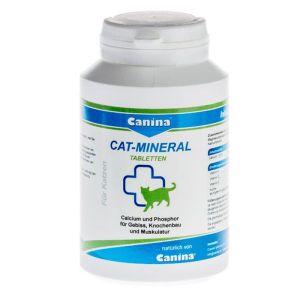 Cat-Mineral Tabs Мінеральний комплекс для кішок - Будівельний харчової крейда з мінералами, мікроелементами, кальцієм, фосфором (для скелета, прикусу, мускулатури), дріжджами (для обміну речовин, апетиту, травлення їжі), порошком з морських водоростей (для хорошої пігментації) - співвідношення кальційфосфор 2:1 Інгредієнти: дріжджі, карбонат кальцію, сульфат кальцій-натрій, магній, борошно з морських водоростей, монофосфат кальцію, хлорид натрію. Додаткові речовини на 1 кг: Вітамін А 320000 од., Е 180 мг, D3 7000 од, мідь 80 мг Дозування: В залежності від рамер кішки 5-8 таблеток на день. Вагітним кішкам і в період годування вологим кормом дозу можна подвоїти. Розфасування: 150 табл. (код - 220922) 300 табл. (код - 220939)Як купити САТ - MINERAL TABS мінеральний комплекс CaninaДля купівлі будь-якого товару, який Вас цікавить достатньо звязатися з нашими менедежерами або оформити замовлення через корзину.