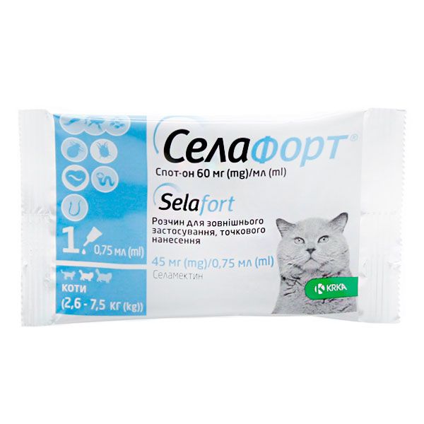 Селафорт краплі від бліх, кліщів і гельмінтів для котів 45мг0,75 мл (2,6-7,5 кг) 2,6-7,5 кг