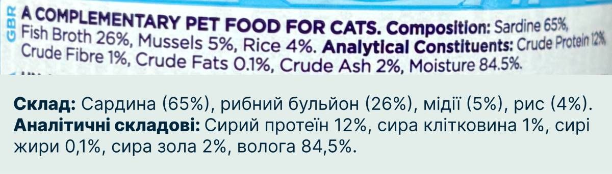 Без зерна, штучних барвників, ароматизаторів і консервантів – тільки найкращі дари моря для вашого муркотливого гурмана!