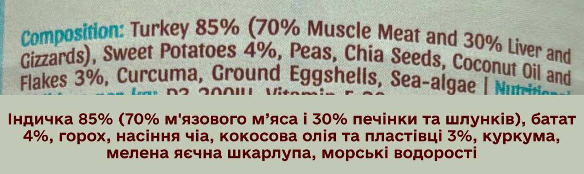 - 85% індичка – високоякісне джерело білка для підтримки енергії і м'язової маси.