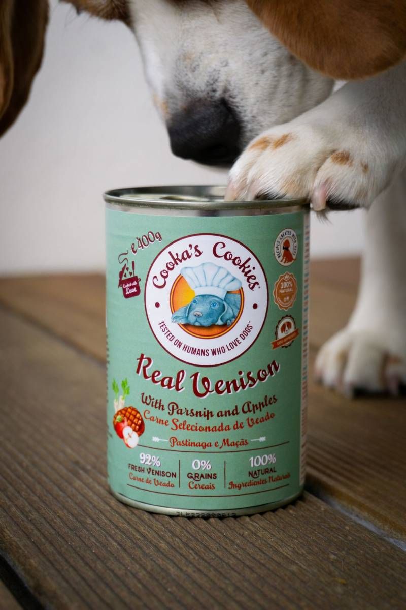 Cooka's Cookies "92% Оленина з овочами та фруктами" – це високоякісний вологий корм, виготовлений на основі 92% оленини, що є чудовим джерелом білка, необхідного для здоров'я та активності вашого улюбленця. Окрім м'яса, у складі присутні овочі та фрукти, що надають корисні вітаміни та мінерали, сприяючи загальному здоров'ю вашого собаки. Цей корм підходить для собак з чутливим шлунком або тих, хто має алергії на звичні види м'яса.