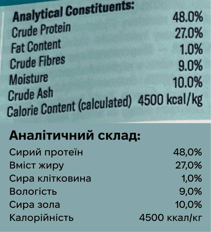 - Омега-3 та Омега-6 жирні кислоти: важливі для здоров'я мозку, зору, імунної системи, а також для шкіри та шерсті вашого улюбленця.
