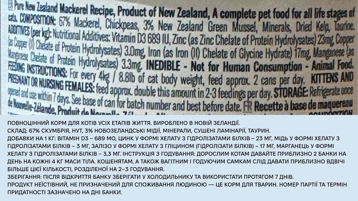 - Один білок — дика скумбрія з Нової Зеландії, ідеальний вибір для чутливих шлунків.