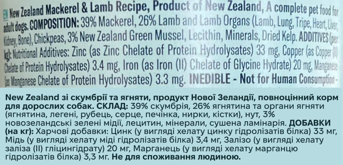 Цей рецепт поєднує найнеймовірніші смаки та користь для здоров'я вашого собаки. Дика скумбрія з чистих вод Нової Зеландії і ягнятина, що пасеться на зелених лугах Північного острова, створюють ідеальне поєднання для вашого улюбленця.