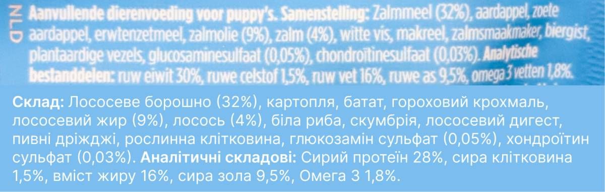 - Омега-3 – сприяє здоров'ю шкіри та шерсті, підтримує роботу мозку та імунітет.