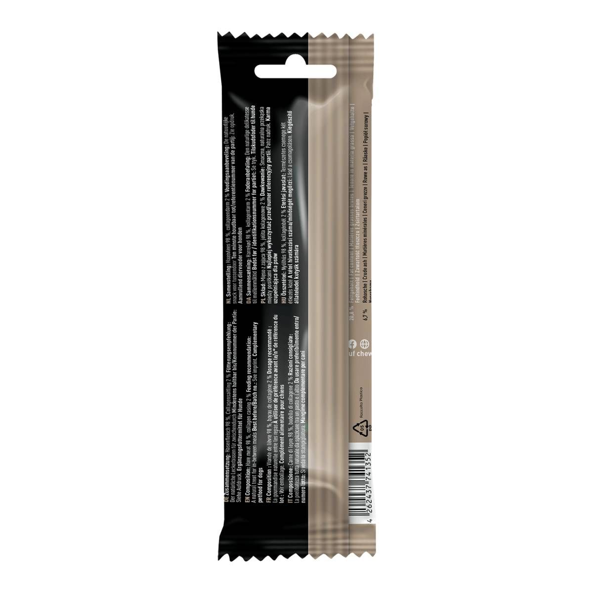 Наші натуральні ласощі для собак не лише приваблюють своєю зручною формою, але й наповнені насиченим м’ясним смаком, що неодмінно сподобається вашому улюбленцю. Завдяки високому вмісту м’яса – 98% чистого м’язового м’яса – ці ласощі стануть справжнім гастрономічним відкриттям навіть для найвибагливіших хвостиків. У лінійці представлено різні види: яловичина, заєць, кенгуру та багато інших – кожен з них дарує неперевершений смак і користь.