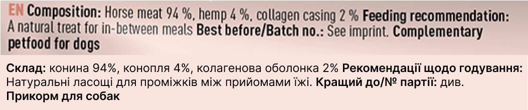 Мʼясні натуральні ласощі для собак 94% Конина з коноплею Chewies для будь-якого віку 75 г