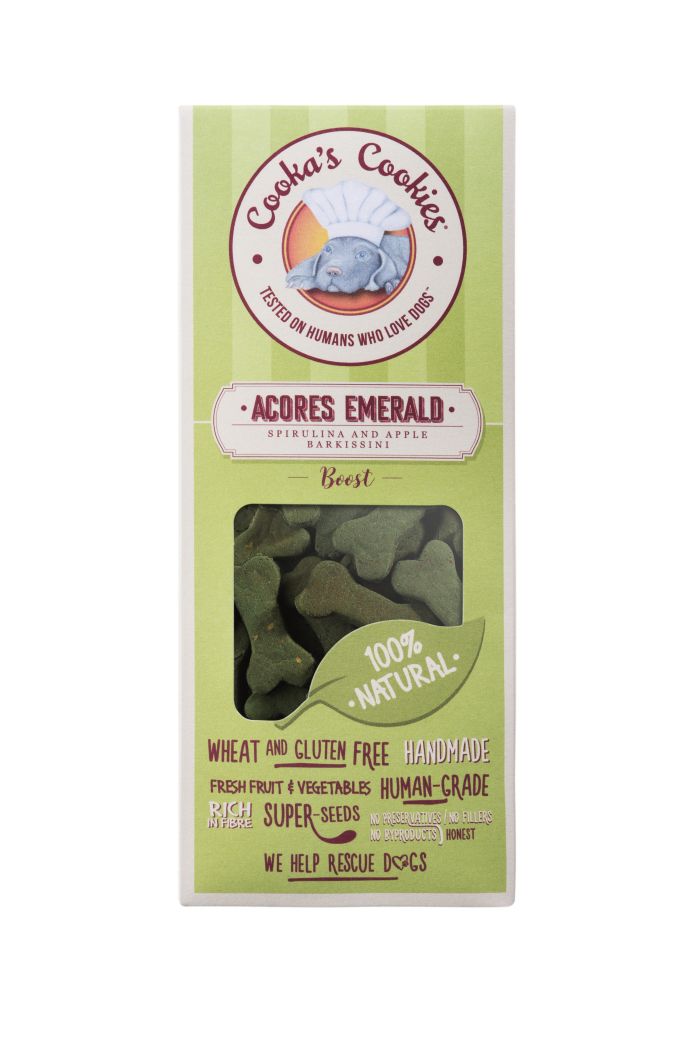 Acores Emerald Barkissini – це справжній суперфуд для вашого собаки! Ці смарагдові ласощі з яблук та спіруліни – це джерело вітамінів, мінералів та антиоксидантів. Спіруліна, відома як "зелена суперїжа", забезпечує організм вашого улюбленця легкозасвоюваним білком і хлорофілом, який допомагає очистити організм від токсинів.