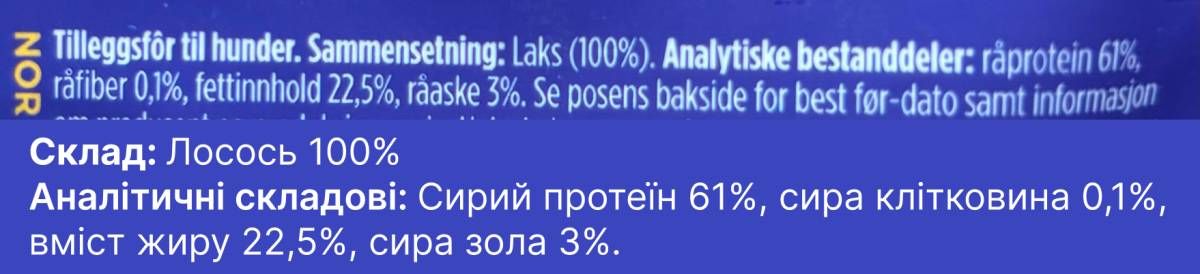 - 100% натуральний лосось – без м'ясних або пташиних білків.