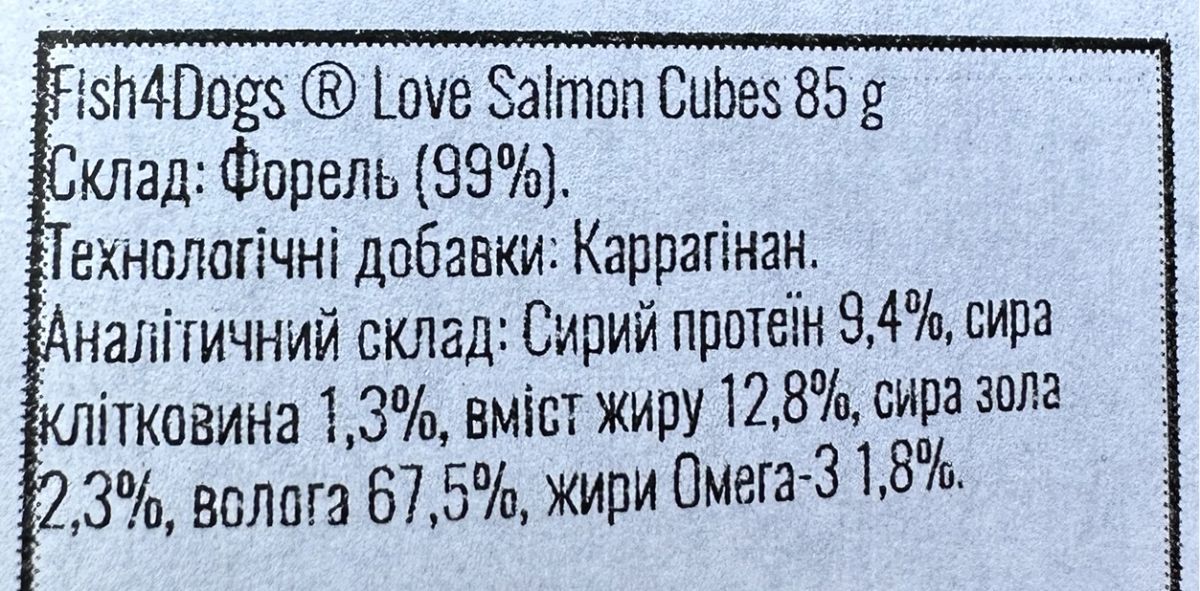 Наші нові кубики з лосося входять до колекції смачних ласощів «Love», створених, щоб показати вашому улюбленцю, наскільки він дорогий вам.