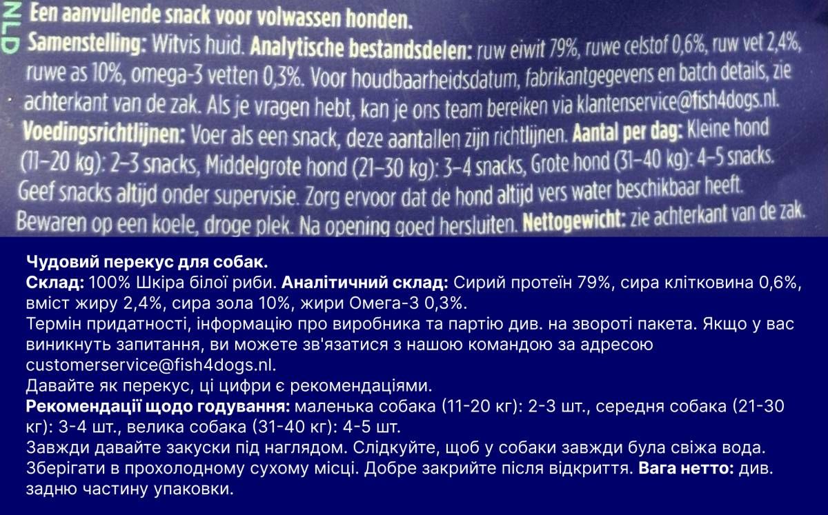 - 100% натуральні сушені риб’ячі шкурки – запечені до ідеального хрумкого стану.