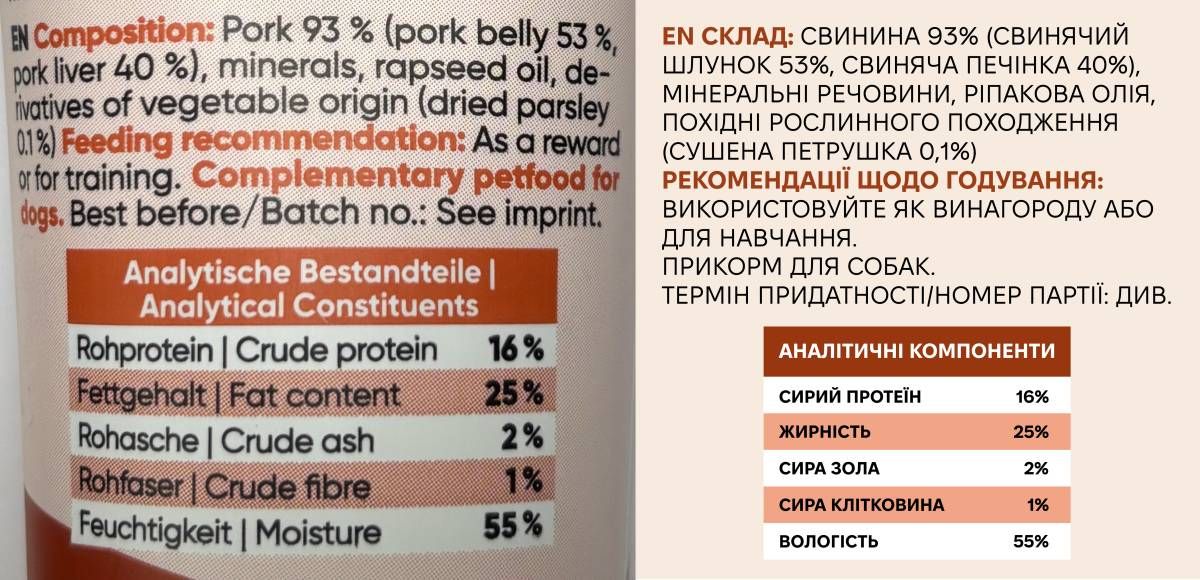 Ингредиенты:Свинина, минералы, рапсовое масло, растительные субпродукты
