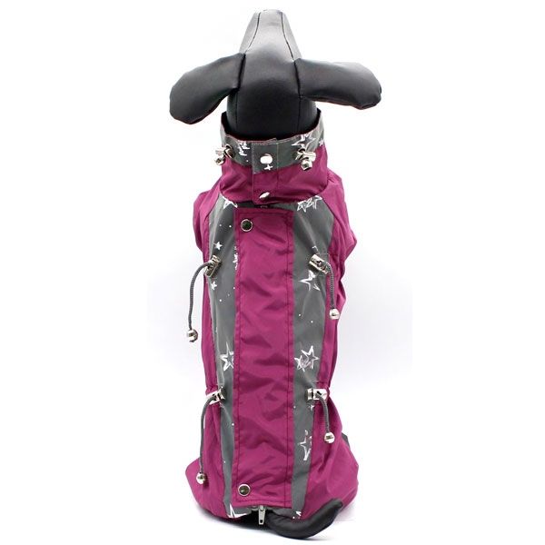 Верх-плащівка. Підкладка-підкладковий шовк. По обєму комбінезону і по шиї затягування. По спинці світловідбивна тканина.РозмірПородаДовжина спини, смОкружність грудей, смВага тварини, кгXXSЙоркширський терєр, той-терєр, чихуа-хуа, цуценята18-22 см25-31 смдо 1,4XSЙоркширський терєр, той-терєр, чихуа-хуа23-25 см32-40 смдо 2,2SЙоркширський терєр, той-терєр, чихуа-хуа26-29 см40-45 смдо 3S1Йоркширський терєр, пекінес (маленький), безпородні30-33 см40-46 смдо 4,5S2Пінчер, йоркширський терєр, пекінес, цуценята26-29 см46-57 смдо 4,5S3Мопс (маленький), ши-тцу, пекінес30-33 см46-57 смдо 6МТакса міні, чубата собачка, пудель, ши-тцу, фокс-терєр, безпородні33-37 см41-53 смдо 7М1Мопс (середній)31-37 см51-68 смдо 10LТакса (середня), спанієль дрібний38-43 см47-58 смдо 9L1Французький бульдог, мопс великий, спанієль середній38-43 см59-70 смдо 12XL1Боксер, спанієль, стаффордширський терєр50 см50-58 смдо 25XXLСтаффордширський терєр, такса54 см52-63 смдо 35XXL1Стаффордширський терєр50-55 см75-95 смдо 50XXXLРетривер, доберман, лабрадор, вівчарка, ротвейлер56-69 см85-105 смдо 60