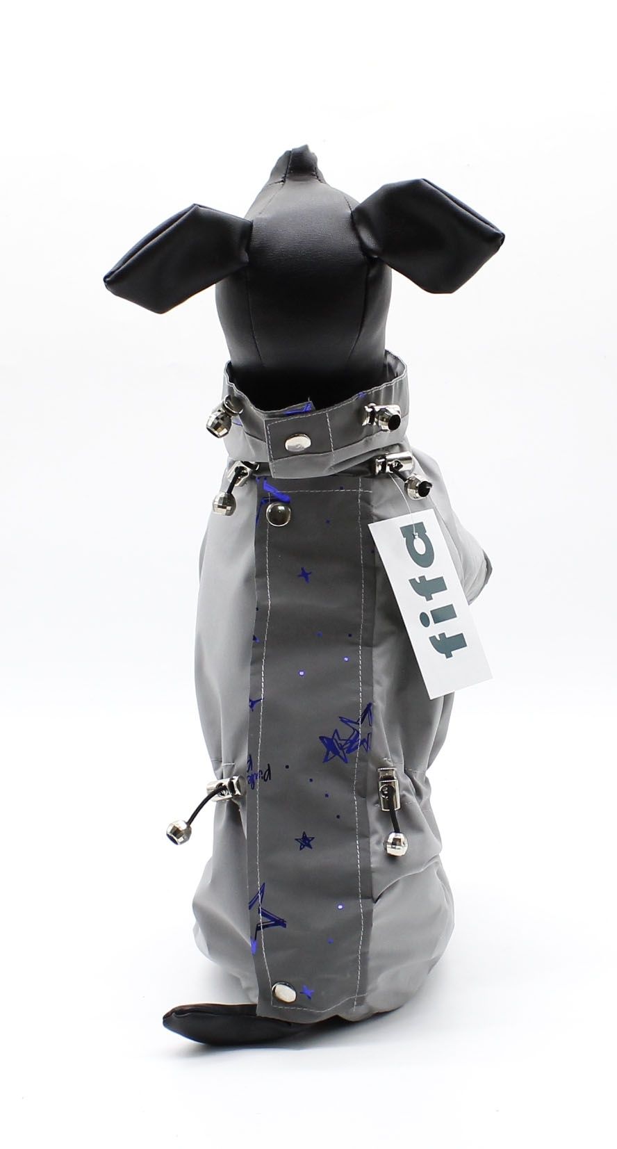 Дощовик із плащової тканини. Підклад-підкладковий шовк. На блискавці. Регулювання за обсягами. Світовідображаючі вставки.РозмірПородаДовжина спини, смОкружність грудей, смВага тварини, кгXXSЙоркширський терєр, той-терєр, чихуа-хуа, цуценята18-22 см25-31 смдо 1,4XSЙоркширський терєр, той-терєр, чихуа-хуа23-25 см32-40 смдо 2,2SЙоркширський терєр, той-терєр, чихуа-хуа26-29 см40-45 смдо 3S1Йоркширський терєр, пекінес (маленький), безпородні30-33 см40-46 смдо 4,5S2Пінчер, йоркширський терєр, пекінес, цуценята26-29 см46-57 смдо 4,5S3Мопс (маленький), ши-тцу, пекінес30-33 см46-57 смдо 6МТакса міні, чубата собачка, пудель, ши-тцу, фокс-терєр, безпородні33-37 см41-53 смдо 7М1Мопс (середній)31-37 см51-68 смдо 10LТакса (середня), спанієль дрібний38-43 см47-58 смдо 9L1Французький бульдог, мопс великий, спанієль середній38-43 см59-70 смдо 12XL1Боксер, спанієль, стаффордширський терєр50 см50-58 смдо 25XXLСтаффордширський терєр, такса54 см52-63 смдо 35XXL1Стаффордширський терєр50-55 см75-95 смдо 50XXXLРетривер, доберман, лабрадор, вівчарка, ротвейлер56-69 см85-105 смдо 60