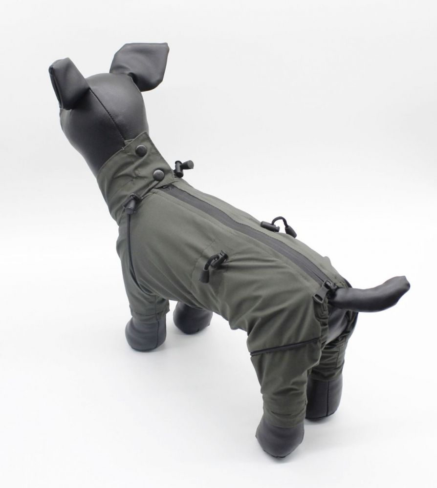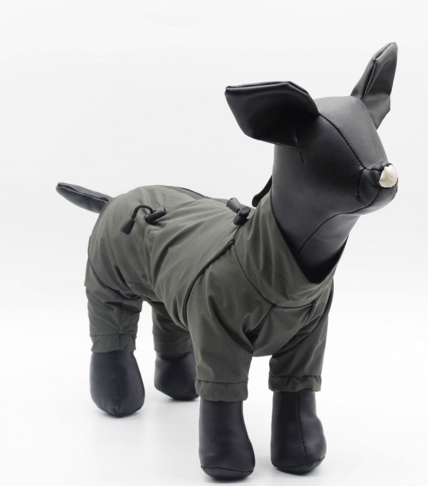 Комбінезон на тонкій підкладці. На спинці водонепроникна блискавка. Матеріал верху плащівка. Підклад - підкладковий шовк. Між верхом і підкладом прокладено непроникну мембрану для більш якісного захисту одягу від вологи. По краю рукава та по ніжках вшито декоративний кант. По коміру і талії для кращої посадки зроблено утяжку для кращої посадки.